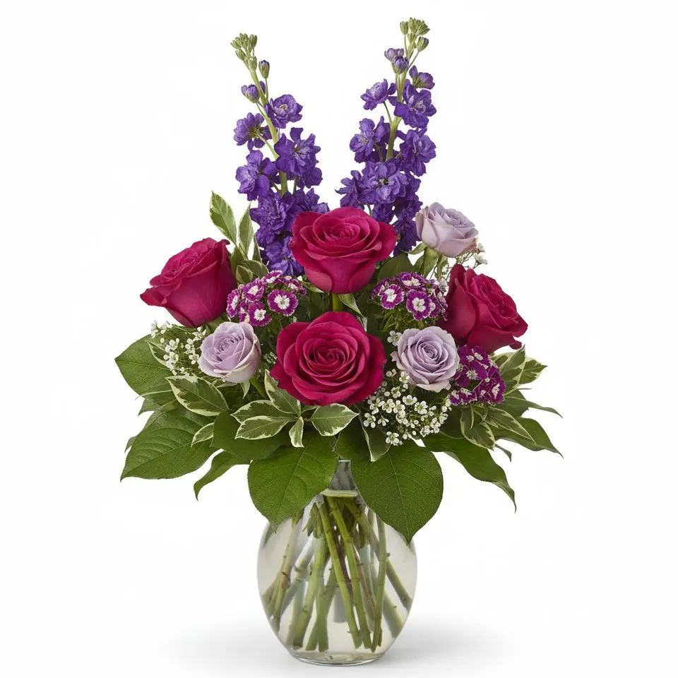 Experience the enduring beauty of our Timeless Rose Garden arrangement, a captivating blend of classic roses, sweet William, and delicate stock. This stunning bouquet brings elegance and joy to any setting, celebrating nature's artistry with every bloom. Perfect for brightening spirits and creating lasting memories.